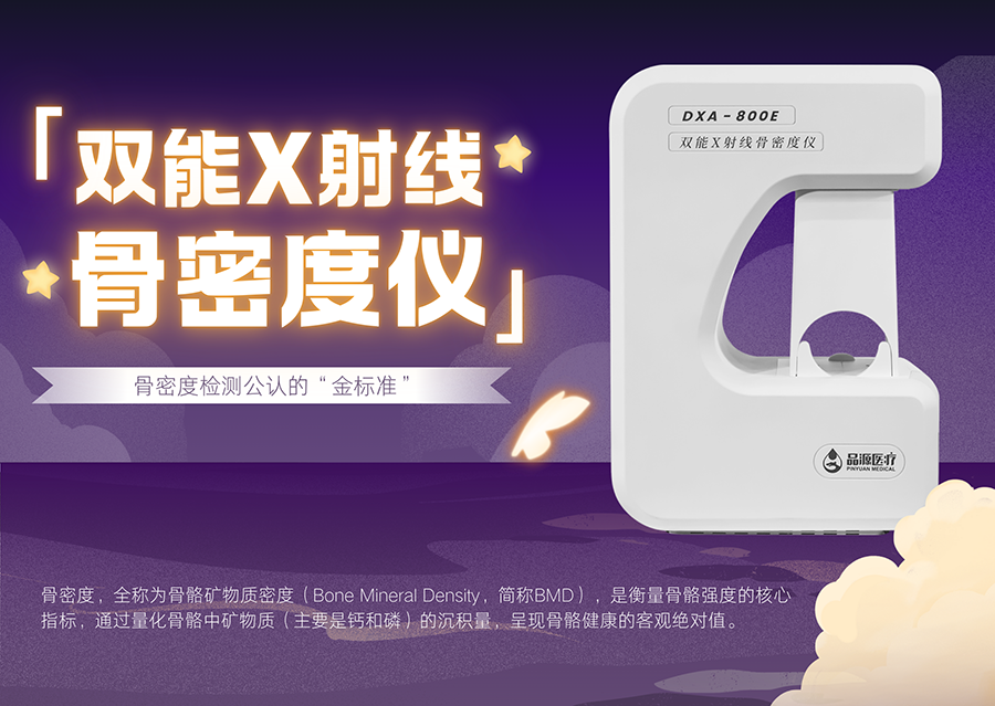 品源雙能X射線骨密度儀以其可靠的檢測(cè)性能和廣泛的應(yīng)用價(jià)值,在骨質(zhì)疏松的早期篩查、診斷、治療及長(zhǎng)期隨訪中發(fā)揮著重要作用。通過將其納入全流程管理路徑,臨床工作者能夠更有效地識(shí)別風(fēng)險(xiǎn)、制定策略、監(jiān)測(cè)療效,從而為患者提供更加系統(tǒng)化、個(gè)性化的骨骼健康管理服務(wù),助力提升骨質(zhì)疏松的整體防治水平。