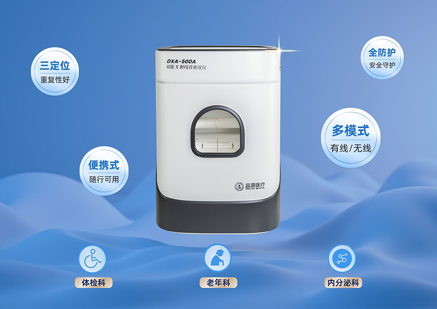 作為品源醫(yī)療傾力打造的重磅新品,DXA-500系列便攜式雙能X射線骨密度儀依托前沿技術(shù)與人性化設(shè)計(jì),在檢測效率、診斷精度、安全防護(hù)及場景適配等關(guān)鍵維度實(shí)現(xiàn)突破性升級,為臨床骨骼健康診療提供更高效、更可靠的一體化解決方案。