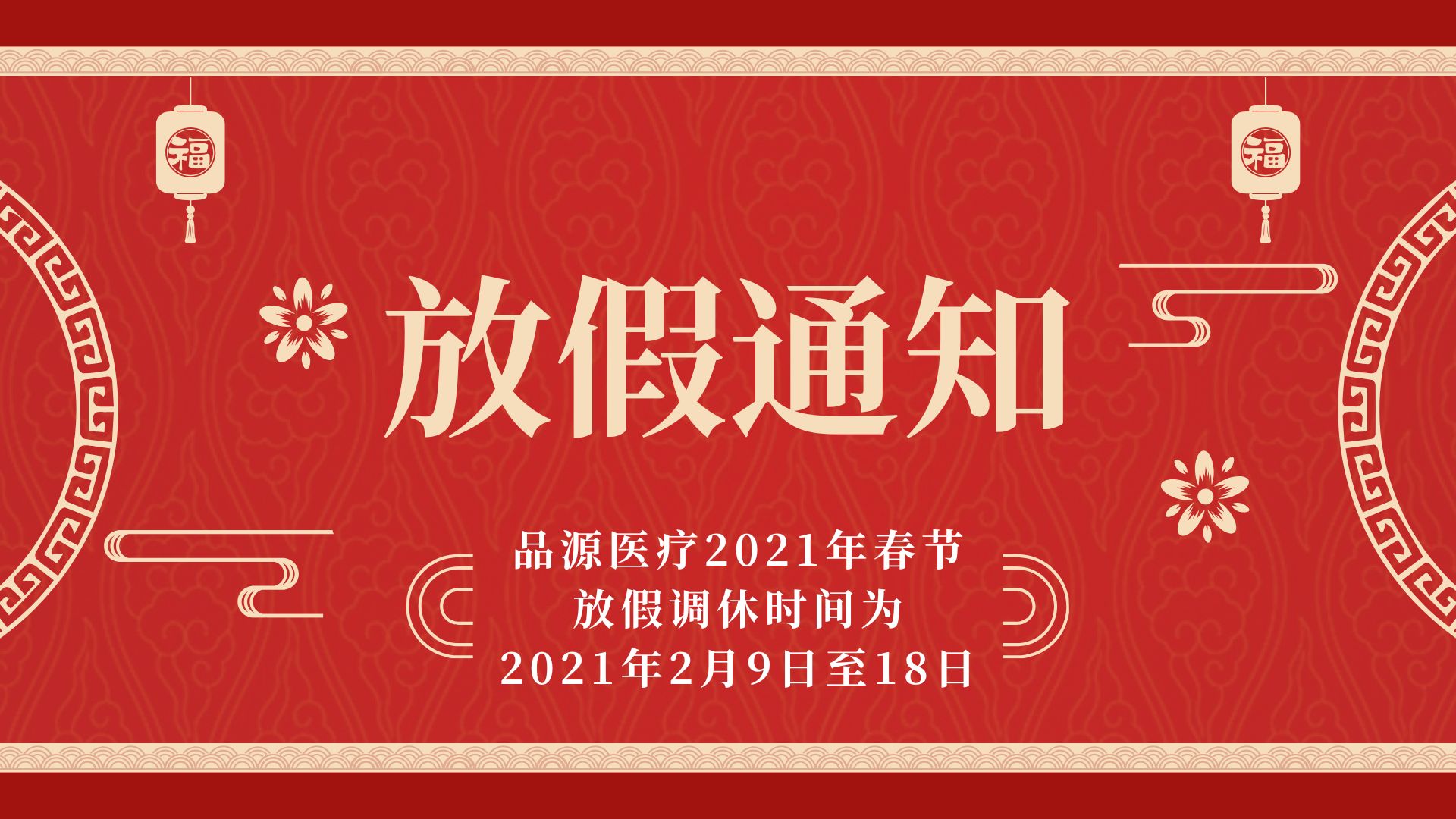 品源醫(yī)療2021年春節(jié)放假時間:2月9日-2月18日,2月19日(大年初八)上班,預祝各位合作伙伴新年快樂,牛年大吉!
